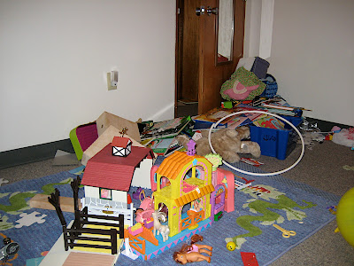 The older children followed their collective muses and created this modern art sculpture out of toys.