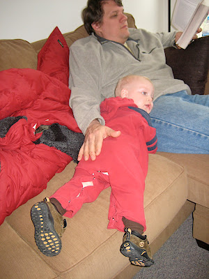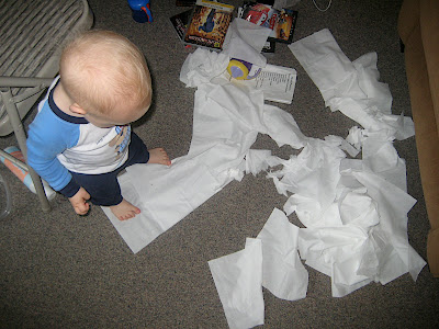 them until he finds what he's looking for, and walks teetering to us