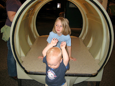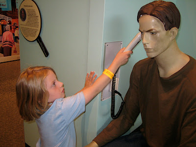 While we were at the museum, we thought it might be fun to play a round of miniature golf - the golf game was designed to provide an education on river systems. Of course, we didn't learn one thing, since chaos broke out as soon as Holden saw that we had multiple small golf balls in our possession and multiple water hazards. After a couple holes we quit keeping score, since we weren't following any of the rules normally associated with a civilized game of miniature golf.