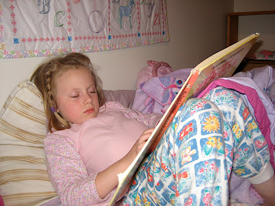 Here's Grace from a few nights ago, falling asleep while reading: